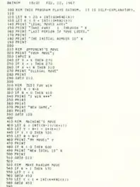 Batnum, a portmanteau of "battle of numbers" is an early BASIC game based on the family of "object pile" games, which includes Nim.