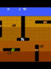 Dig Dug is a 1-2 player arcade game in which you have to use your shovel to dig your way through the earth. Stopping you from doing this are two monsters, called Pooka and Fygar, who will continually chase you around. The only weapon that you carry is an air pump, which you can use to inflate the monsters to the point where they explode. (if you start to inflate them but stop doing so, the monsters will get turned back to their normal selves). Furthermore, rocks are scattered throughout the earth, and you can use these rocks to squash them. If the monsters do not find you for several seconds, they will eventually get turned into ghosts, which can walk through the earth. They are invincible and cannot be killed. From time to time, vegetables will appear in the center, and you can get these for points.