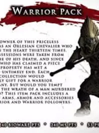 Lay waste to your enemies with this collection of arms, armor and accessories for your Warrior and Warrior followers. Features 3 follower items, player weapons and armor sets.