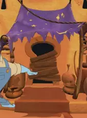 Based on the characters from the animated Disney movie Aladdin, Disney Learning: Math Quest with Aladdin takes place in the fictional city of Agrabah, where the evil genie Bizarrah has just been set free from a long imprisonment in a lamp. The player, with assistance from Iago (the parrot) and the genie, must break out of the dungeon where Bizarrah has confined him, find Abu, Jasmine, and Aladdin, find all the pieces of the broken lamp, and lock Bizarrah away inside it for good.