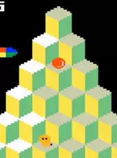 All the action and excitement of the popular arcade game are here! Hop Q*bert up and down a pyramid of cubes, changing colors on each of the cube tops. When they're all the same color, Q*bert moves to a new - and more difficult - pyramid. But strange characters want to stop Q*bert from his fanciful mission. You'll have to do some fast hopping in this quick and "quasy" game! 1 or 2 players.